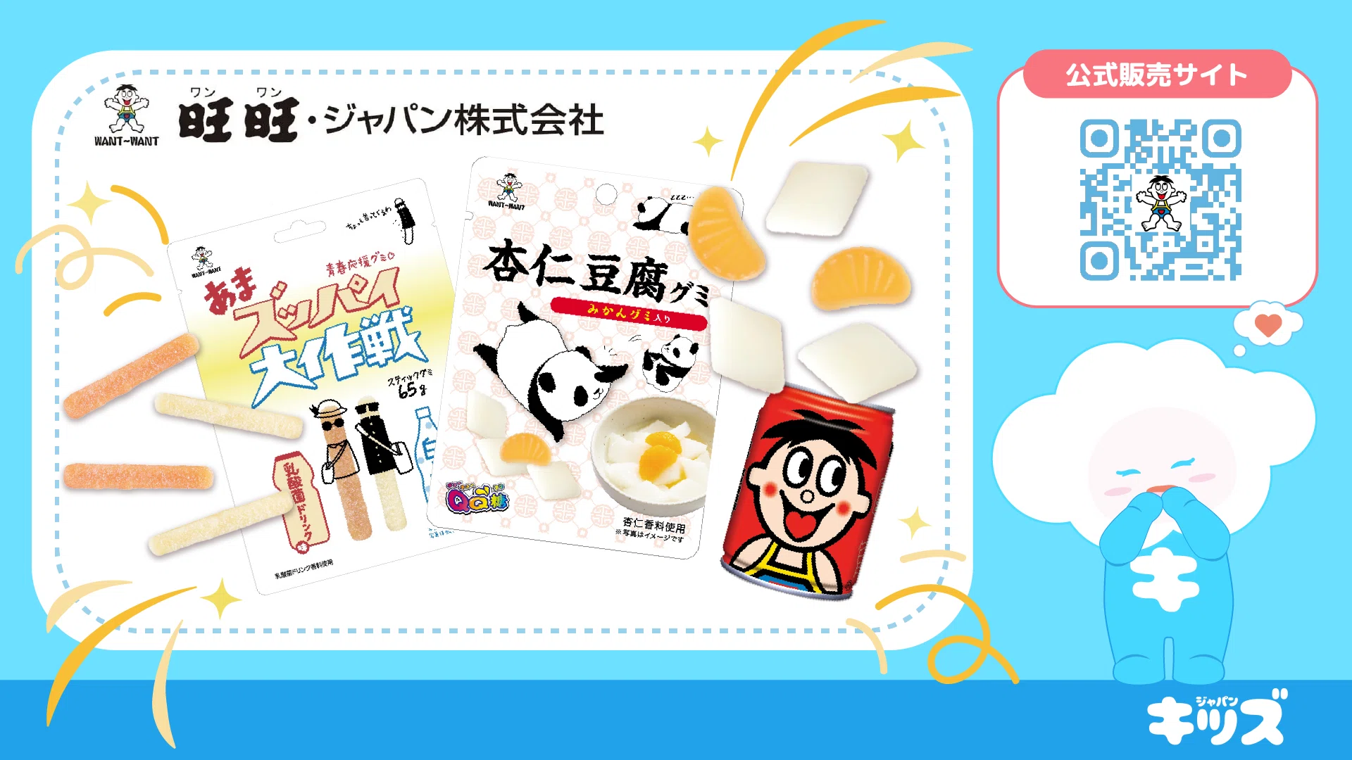 イベント当日、KIDSJAPANの新規登録をされた来場者には、大人気商品の「旺旺ミルク」をウェルカムギフトとして無料でプレゼント。また、会場の抽選イベントに参加したご家族には、甘酸っぱく楽しいお菓子「スッパイ大作戦」が当たるチャンスも。子どもたちに懐かしくも楽しい味わいを提供し、笑顔溢れる空間をつくりあげる所存です。